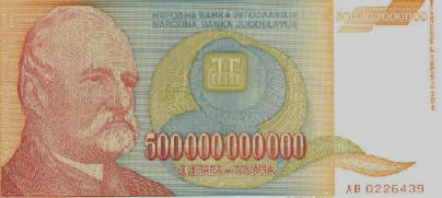 Yes, I have 500 billion! Unfortunately, its not $500 billion American, but 500 billion Dinaras from Yugoslavia. The above bill is worthless because Yugoslavia’s economy and government have disintegrated. Serbia, Bosnia, and Albania were all part of Yugoslavia before the Baltic Wars. If you remember, about 10 years ago the United States’ military had to go over there to bring stability back into that war torn region.